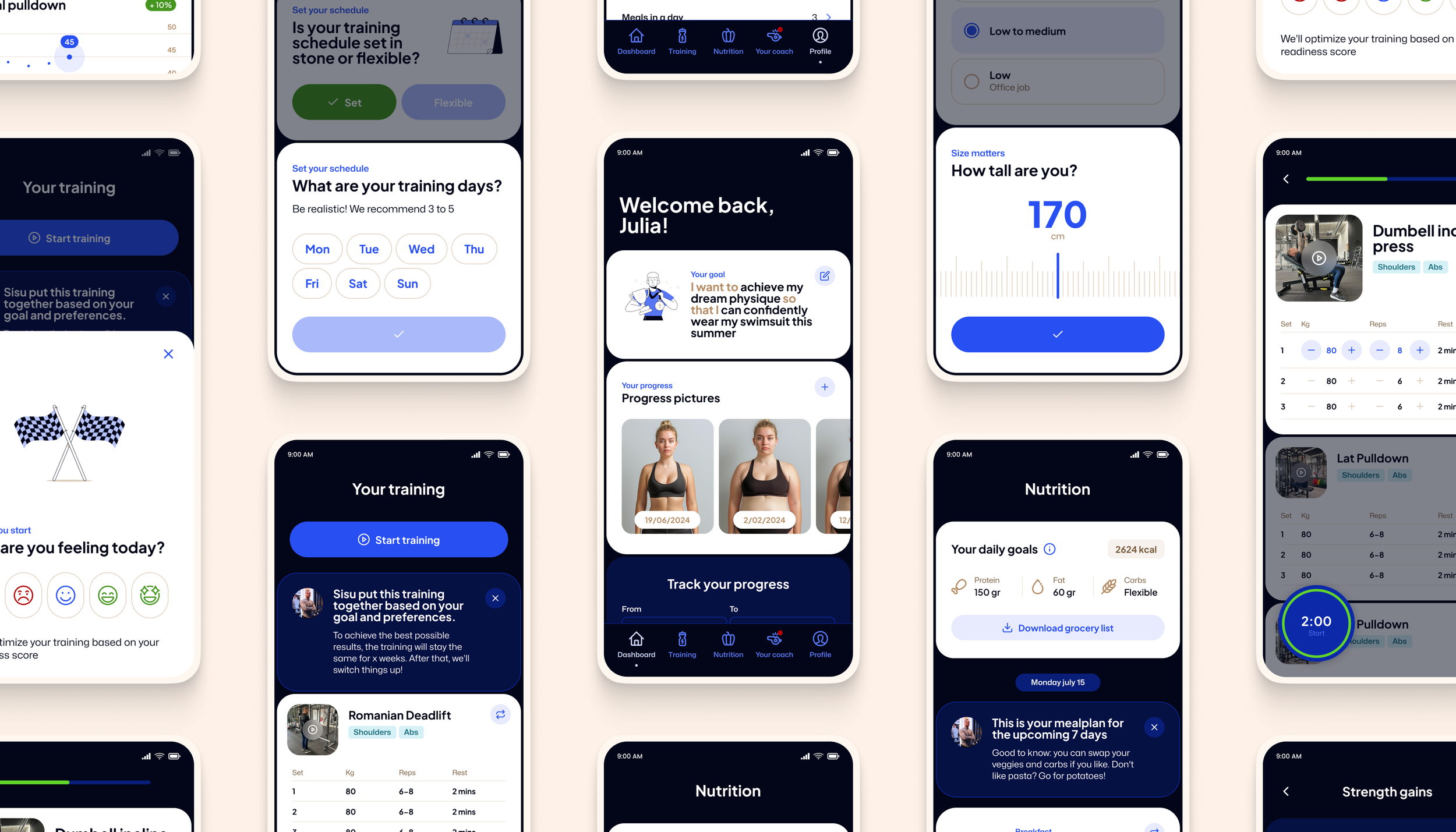 Sisu is an AI-powered fitness app designed to help users reach their dream physique. For this project, I was responsible for developing the brand identity and for designing the user experience and interface of the app.